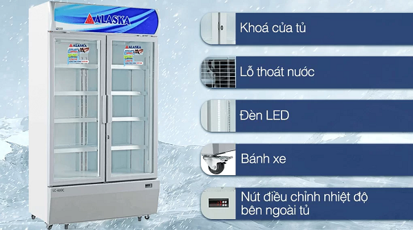 Là model tủ mát 2 cánh có khóa bán chạy hàng đầu hiện nay, Alaska LC-600C có 2 cánh kính, có đèn led và hệ thống sưởi kính chống đọng sương, lý tưởng làm tủ trưng bày đồ uống.